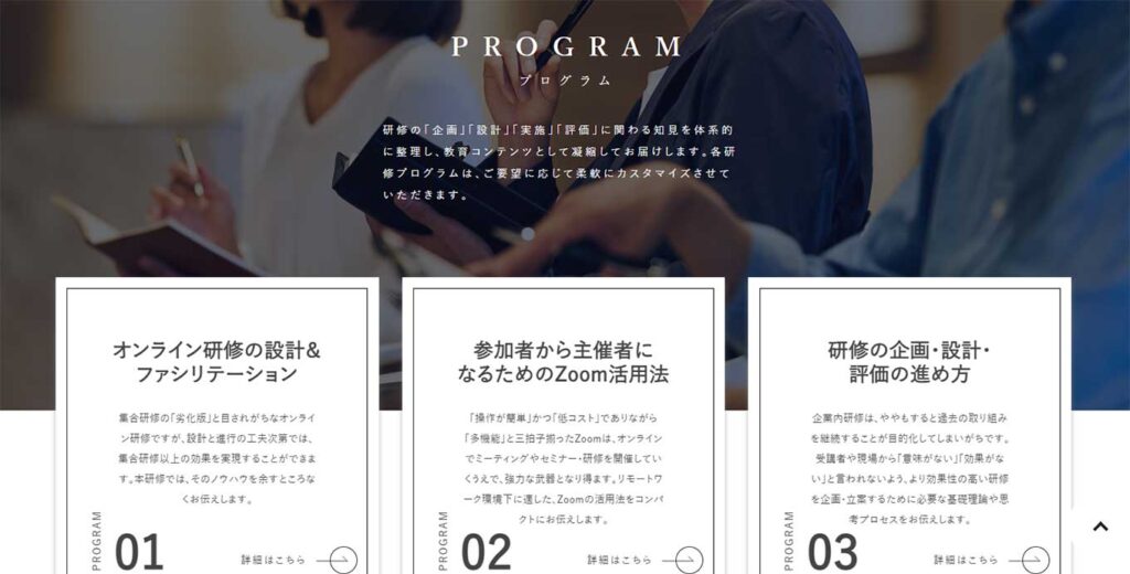 応用しやすい内容で、各クライアントの要望に沿った企画を提案していますので、一度ノウハウを学べば長くクライアントの成長に役立てることができるでしょう。